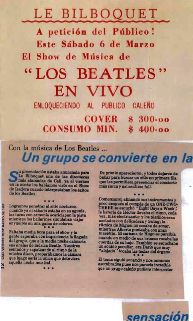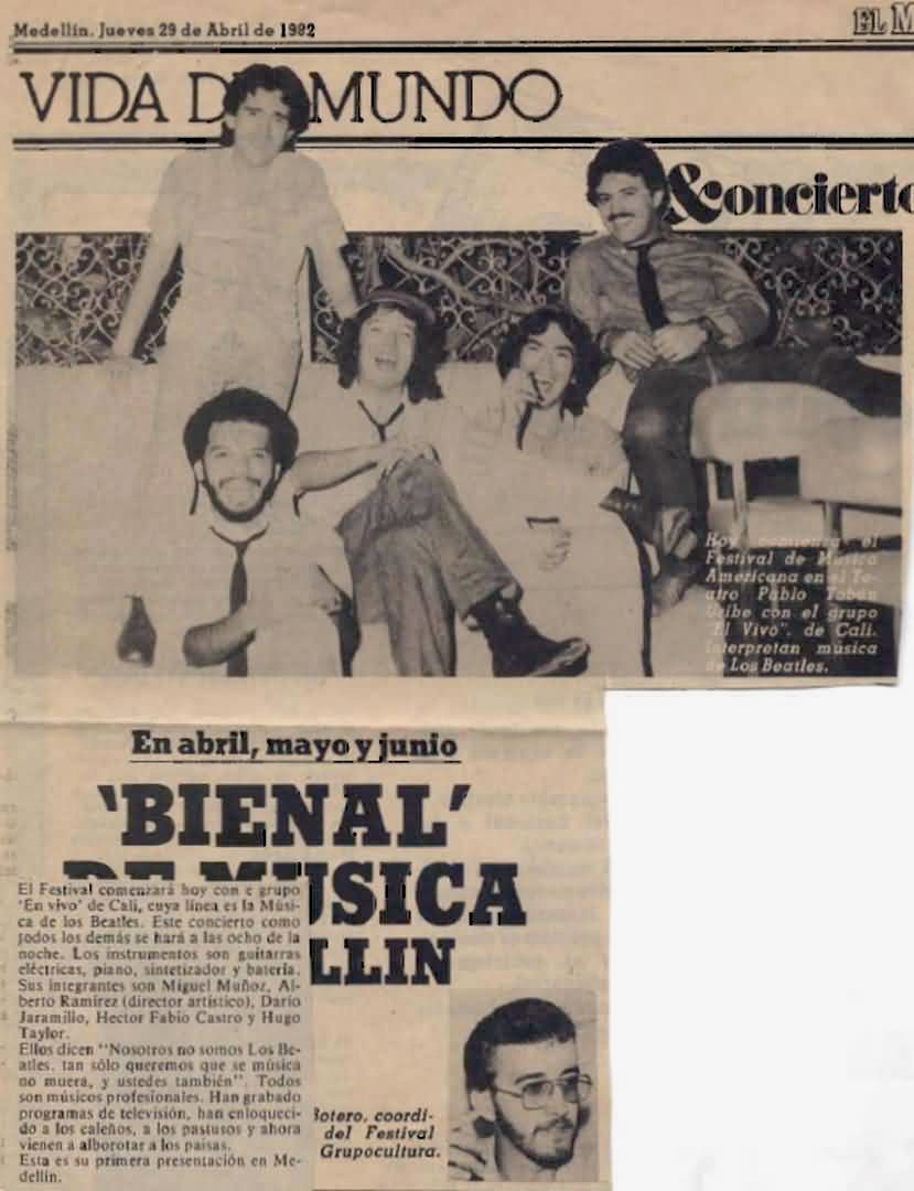 Back to EnVivo Main PageThese historic photographs capture EnVivo during their memorable performances and press coverage across Colombia in the early 1980s. From intimate venue shows at Le Bilboquet to major press features in El Occidente, these images document a significant era in Colombian rock history.